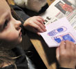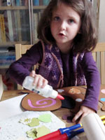 Leora heeft de Sint-prikblokjes van vorig jaar uit de kast gehaald. Rosalie maakt daar heel serieus werk van.