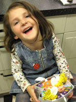 Best een handige regel. Zo'n feest kan ook slecht uitkomen. Zo hebben de zusjes met wie Rosalie en Leora vaak spelen, klasgenootjes die anderhalve straat verderop wonen, nogal onverwacht vannacht hun vader verloren. (Ik zal er verder niet over uitwijden, want zo'n verhaal is verder natuurlijk privé.) Maar dan moet je er niet aan denken dat er ook nog 'ns zestig keer op een avond wordt aangebeld. Door blije, bedelende klasgenootjes.