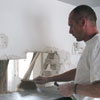 Het gat in de keukenmuur, gevolg van de iets te zware pneumatische hamer van de buurman, is bijna dicht. Bijna. Morgen komt de stucadoor. Eerder heeft Erik nieuwe bakstenen in de muur gemetseld.