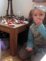 Alleen een kniesoor kan na zoveel eigen initiatief nog zeuren over andere kinderinitiatieven: zoals het bedekken van de vloer met de inhoud van speelgoeddozen. Toch? ;-) Meestal spelen ze ook gewoon heel lief met al die poppetjes en diertjes. Aan het eind van de herfstvakantie moet ik maar 'ns op zoek naar een sneeuwschuiver ;-)
