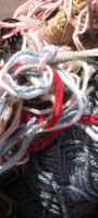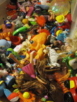 Beneden gekomen, nam ik me éven voor nooit meer uit te slapen: een bol of twintig zaten compleet in de knoop. Om een Petshop-beestje gewikkeld: gebruikt als slaapstro voor Plastic Beestjes.