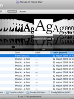 Cover Flow blijkt zelfs handig om Fonts te previewen: doorzoek de disk met de zoekterm font, en bekijk de output met Cover Flow. Je hoeft de font-bestanden dan niet meer afzonderlijk te openen om erachter te komen hoe het (niet geinstalleerde, gebackupte) font eruitzag.