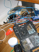 In de hoek naast de haard lag een spagettiberg kabels, een router en een hub. Sinds december 2007.  De kluwen werd af en toe aan het zicht onttrokken door een stapel dozen, door naaimachines — of het bankje met kinderspeelgoed. Maar nu eindelijk, applaus voor Edwin, lopen de kabels onder de vloer, en staan router en hub in de kast. Wat een ruimte, wat een rust!