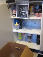 M'n oogrollende ergernis bracht me op een idee: èlk kastje fotograferen vóór de inhoud de dozen ingaat. Dat scheelt tijd bij het uitpakken en terugzetten.