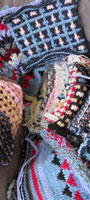 Daar had ik even buiten de wol gerekend. De erfenis van onze Buurvrouw, waarvan ik eerst een ajourvest gebreid heb, en nu bezig ben met het zoveel-en-dertigste patchwork lapje. Het klinkt misschien een beetje oubollig, —hoewel...— maar juist wanneer ik het druk heb, zit ik graag op momenten-tussendoor te breien. Enfin.