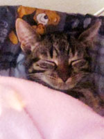 Zo eindigde de ‘geluksdag’ (aldus Leora, die ook nog won op school met Bingo) toch nog een beetje verdrietig en uitgeteld. (Niet voor het poesje en haar eigenaars, natuurlijk ;-))