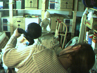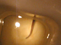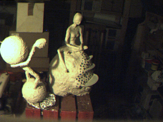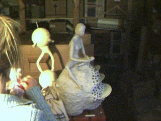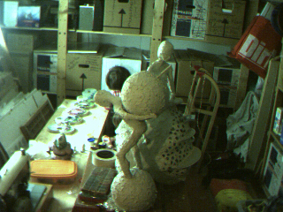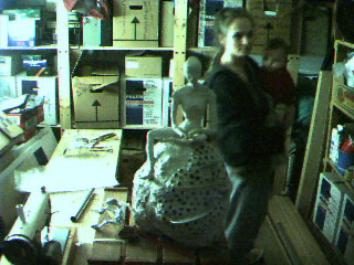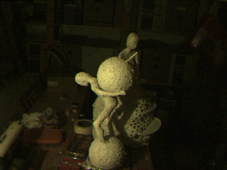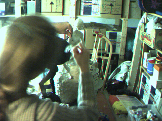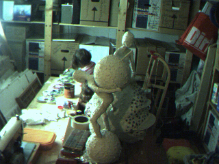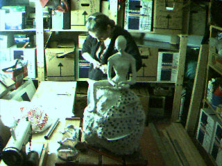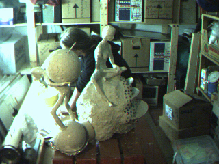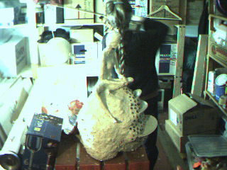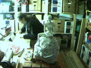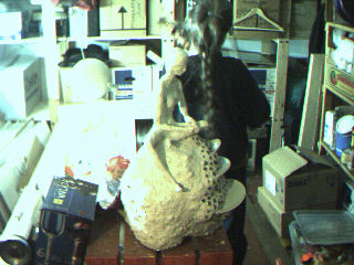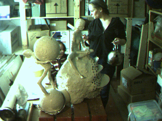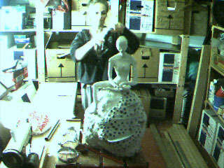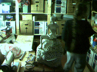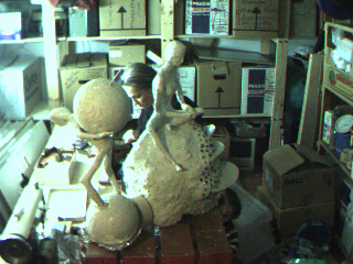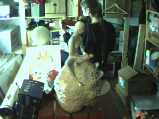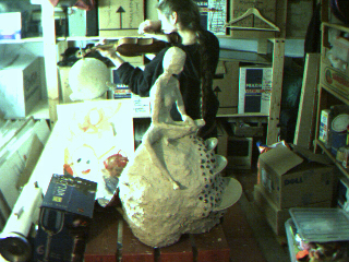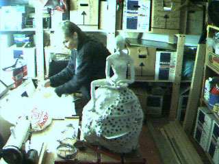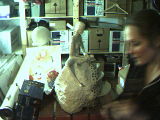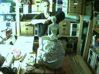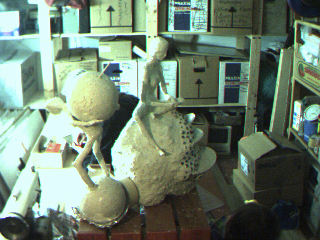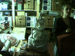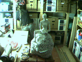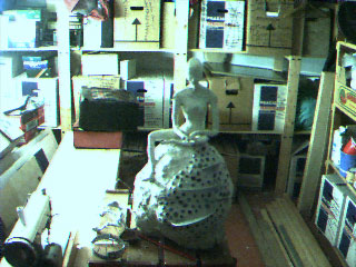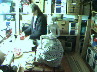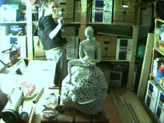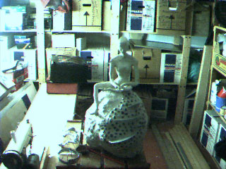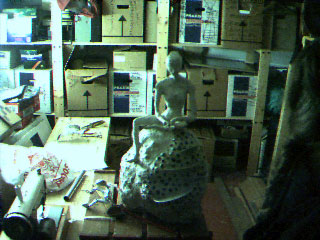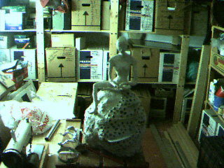 |    |  keldercam  Is er aan het sculptuur gewerkt vandaag? — Het eerste beeld is klaar, het is een grafmonumentje. Het tweede sculptuur is inmiddels ook klaar.... Elke minuut laadt de cam vanzelf het nieuwste plaatje, met dank aan Edwin ;-) Laden kan even duren, het is een oude server. recent webcam-snapshot helemaal bovenaan   20u31 - 28 jan '07: Het In Memoriam-beeld in opdracht van W. A. voor zijn zoon M. A., zoals het was op het moment dat ik het aan W.A. de opdrachtgever heb overgedragen. Alleen de sokkel van het beeld was nog niet gereed, die zal W.A. zelf maken. Zoals ik al eerder 'ns schreef stelt het beeld ‘de evenwichtkunstenaar voor, die balanceert tussen twee werelden, de oude indische en de hollandse, evenwicht zoekt in stemmingen, prestatiedruk, en uiteindelijk de strijd verloor.’ Toen wij W. leerden kennen, leefde zijn zoon nog. W. was trots op M., zijn zoon. We hadden W. leren kennen op de Nieuwe Ooster. Zo vroeg hij me later zo'n beeld als voor mijn zus te ontwerpen voor zijn zoon.   12u42 - 25 nov '06: Achter het beeld zie je nog nèt Rosalie's handje in een turquoise-blauw mouwtje, aan de werktafel te kneden met kinderklei... :-)   12u40 - 25 nov '06: Meer werk aan het In Memoriam-beeld in opdracht van W. A. voor M. A   14u22 - 23 nov '06: De harddisk van de antieke keldercam-machine is gecrashed geweest.. Nu is 'ie is weer up and running....   13u14 - 25 okt '06: De kapstok, die Leora lakt, leek een meerjarenplan, maar nu is 'ie bijna klaar...   13u12 - 25 okt '06: Leora werkt aan haar kapstok... Het kleine kapseltje links van Leora is Rosalie.   12u42 - 25 okt '06: het licht in de kelder is nog uit... staart in beeld10 Oktober 2006 19:53:  We hebben de staart in de WC [AVI, 3.2 Mb] nu gefilmd. Net als de eerste keer was het Edwin die de rattestaart opmerkte. Mijn maag draait om, maar het bewijs dat de Gemeente hier in de straat mag beginnen met rattenbestrijding hebben we alvast ;-| Weet iemand nog een leuk koophuis? P.S.: Het fluisteren aan het eind van het filmpje “Oh hij gaat al weg..” is Leora.   09u12 - 24 aug '06: het laatste wc-pot-beeld voor 'ie terug naar de kelder verhuisde ;-)   01u21 - 24 aug '06: hoe zit het met dat beest in het riool? ;-} Die vraag is iets serieuzer dan hij klinkt... Uit mijn weblog: reptiel in riool?U kent Edwin, héél nuchter type. Hij is er van overtuigd dat hij vanavond minstens een halve minuut lang een bewegende staart in de WC-pot zag. Een centimeter of 12, zelf bewegend. Alsof de staart vast zat aan iets groters onder het vlakspoel-plateau. Op het moment dat ik aangerend kwam zag ik nog net een puntje verdwijnen, 5 x 5 milimeter —het had ook een deinende drol kunnen zijn, sprak ik poëtisch ;-] Maar ik zag het met eigen ogen: er bewóóg iets in de WC.   Afijn, wij hebben de cam een nacht naar de WC-pot verplaatst. Toen Edwin naar bed ging, heeft hij niet 'save elk cam-beeldje afzonderlijk' ingeschakeld, zodat ik, enigzins tot mijn teleurstelling ;-} vanochtend de beeldjes niet nader kon analyseren... We gaan ervanuit dat het een rat is. De reacties wijzen die kant uit: dePrima: Lang geleden heb ik eens meegemaakt dat er een rat uit de WC kwam. Het eerste wat me bij het binnenkomen van de WC opviel, was de natte bril. Wie is hier geweest, vroeg ik me nog af. Een fractie van een seconde later zag ik de boosdoener onder het douchegordijn verdwijnen. Ons hondje heeft hem gepakt en we hebben nooit weer een rat gezien. Wel hebben we tijden de deksel op de pot gehouden, tussen de bezoeken door dan, en namen pas plaats nadat we er een flinke klap op hadden gegeven (ik zie het weer helemaal voor me):-) Brr. Zo je dat al gebruikt: haal het wc-blokje uit de pot. Daaraan kunnen ratten zich naar boven trekken. En nooit eten door de WC spoelen, als je dat al doet. Daar komen ze op af. Smile: Een rat lijkt me meer voor de hand liggend dan een reptiel, en ook enger vind ik. Heb daar ooit eens iets over gezien op Discovery ofzo. Ratten zitten overal, vooral in een stad. Brrr. Hier waren laatst de riolen overgelopen in de straat. Ook erg GOOR. Eufrasieke: Het verhaal klopt, heb het in Holland al vaker horen vertellen. Komt door het gescheiden afvoercircuit dat er bestaat. In de ene riool moet het regenwater, in de andere... (zeg maar) het afval. Genoeg doorspoeld worden die afval riolen niet, en dus kweekt men er met gemak allerhande ongedierte in. De oplossing voor menig wat rechtstreeks op die riool aangesloten toiletten is dan ook een "terugslagklep" zodat niets, ja zelfs kruipend, uit de riool weer naar binnen kan. Ratten.. een vreselijk smerig idee. Zeker als je De Pest van Camus ooit gelezen hebt ;-} Maar we hebben hier inderdaad ratten in de binnentuinen, dus dat ze ook in het riool huizen is eigenlijk wel logisch (?) Wordt vervolgd.....     01u18 - 24 aug '06: het laatste beeld-beeld voor 'ie één nacht naar de wc verhuisde ;-)   19u38 - 19 jul '06: even de cam-software resetten, die was gecrasht   19u49 - 22 apr '06: zoals ik zei, het zicht is gewoonlijk oninteressant..   19u44 - 22 apr '06: tussen beide sculpturen door is Leora te zien...   19u17 - 22 apr '06: rechtsonder het rechterbeeld speelt Leora weer...   18u51 - 22 apr '06: het zicht is gewoonlijk oninteressant, een paar handen op de werkplank, en de donkere vlek rechtsonder is een spelende Leora   20u54 - 03 apr '06: wat mensen in vredesnaam nog méér in hun kelder doen....   je wilt het eigenlijk niet weten... (niet horen, that is ;-))   gelukkig zijn beelden doof.... ;-)   alleen die strijkstok (bij-ijna) tegen het kelderplafond   ..ho, roept daar 'n kind...   Staat daar nu een doos wijnglazen en een kindertekening bij dat beeld? (Ja!) :-)   14u21 - 18 feb '06: Jolie repareert een poppenkastpop   en draagt -oh ijdeltuiterij- een lady-macbeth-kapsel :-)   heerlijk zo'n overbelichte cam, nergens een rimpel te zien ;-)   20u24 - 3 jan '06: N. komt eten en wil weten of de webcam echt is.. dit bewijs toonde we hem boven in de browser :-)   12u49 - licht in de kelde